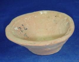 | Description / विवरण | Plain, terracotta coarse vessel - a lamp with flaring sides, feature less rim and circular flat base. It is irregular in shape. |