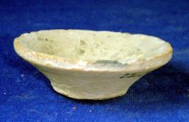 | Description / विवरण | Terracotta lamp, having round featureless rim, flared body, shallow depression, striation marks on both the inner and outer surfaces, having round and flat base with string marks. |