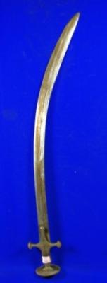| Description / विवरण | Iron tegha sword having curved blade with grooves and simple iron hilt. |