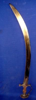 | Description / विवरण | Iron tegha sword having curved blade with punch marks at one side and plain Alamgiri hilt with knuckle guard todedar . It is rusting. |