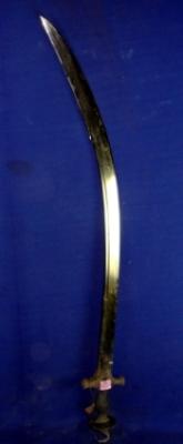| Description / विवरण | Tegha sword with slightly curved blade. The hilt has embossed work. |