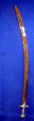 | Description / विवरण | Iron tegha sword having curved blade and plain Alamgiri hilt with knuckle guard todedar . |