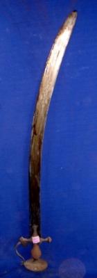 | Description / विवरण | Iron sword having slightly curved blade and Alamgiri hilt with knuckle guard todedar . |