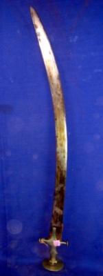 | Description / विवरण | Iron tegha sword having curved blade and hilt without any decoration. The pommel Katori is detached from the fixture. |