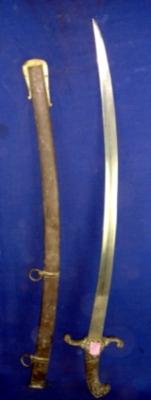 | Description / विवरण | Iron Kirch Sword having slightly curved blade and brass hilt in the shape of lion head. The scabbard is also made of brass. |