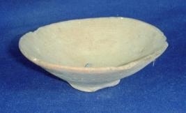 | Description / विवरण | Terracotta lamp having flat circular base and flayered sides. Slight portion of rim is broken. There is clay incrustation on it |
