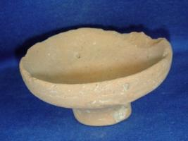 | Description / विवरण | Terracotta pedestaled lamp with transverse perforation in the base, which was probably meant to put several lamps in a row |