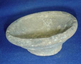 | Description / विवरण | Ill fired, terracotta lamp with flayed body and flat circular base. Clay incrustation all over. |