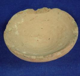 | Description / विवरण | Terracotta lamp, round and flat footed base, has flayered body and rim portion is inverted. |