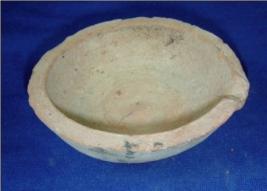 | Description / विवरण | Plain terracotta vessel - lamp diya with stand. It is thick and deep with the provision for flick on one side. |