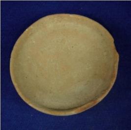 | Description / विवरण | Coarse terracotta vessel, probably a lamp diya , with a narrow, flat and circular base. |