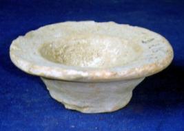 | Description / विवरण | Coarse terracotta lid, having flat, round footed, with string marks, flayed body, carinated line in the inner surface with averted thick rim. |