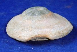 | Description / विवरण | Crudely finished terracotta knob- lid, it is ill fired, knob is broken and base is irregular. |