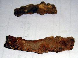 | Description / विवरण | Iron object probably hilt of knife. It is broken but restored later on. Heavily clay incrustation is seen all over. |