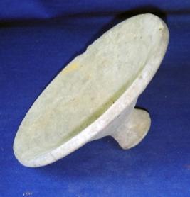 | Description / विवरण | Semi fine terracotta lid, round in shape with a knob in the top and inner side has a incised hole in the centre. Carnation marks are seen on the surfaces. |