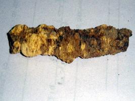 | Description / विवरण | Iron object hemispherical in shape and slightly broken from one side. It is probably part of broken shallow dish or bowl. |