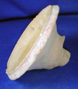 | Description / विवरण | Terracotta lid, with broken tip, some striation marks over the surface while the mouth is round. Clay incrustation all over the surface. |