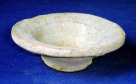 | Description / विवरण | Terracotta lid, the base is round and flat rough surface, some deep striation marks on the waist part, deep depression at the centre part. Clay incrustation all over. |