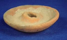| Description / विवरण | Terracotta lid, lime plastered with missing knob and circular base. |