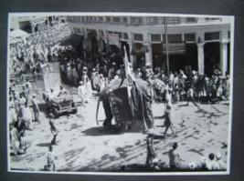 | Description / विवरण | The photograph shows Tej Singh with two other people in walking posture. Tej singh ji is wearing the floured suit, white pyjama & a turban. The man in the middle is holding both hands on either side. In the background, there is a group of people & entry state. The flower pot is kept on either side of the path. |