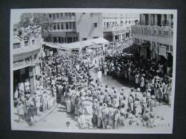 | Description / विवरण | The photograph shows Tej Singh with two other men on his left side, in walking posture approaching towards raised platform many civilians, policemen are with them. A boy is holding an Indian flag. In background pillars of the palace is visible. |