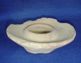 | Description / विवरण | Plain, coarse terracotta vessel - lid probably on earthen lamp, sides are broken with a narrow mouth base is slightly broken |