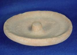 | Description / विवरण | Plain, coarse terracotta vessel - circular lid with circular knob, carination marks and flat circular base. |