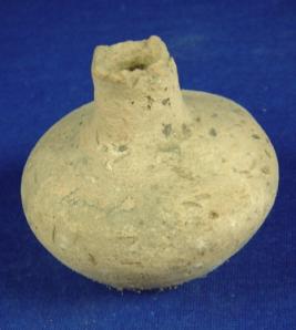 | Description / विवरण | Glazed, semi fine terracotta Miniature pot with narrow flat-circular base, round body and high narrow neck, the rim part of which is broken. |