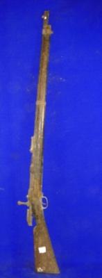 | Description / विवरण | Kartoosi single barrel Turkish gun with bolt and wooden butt. |