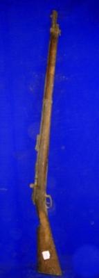 | Description / विवरण | Kartoosi single barrel Turkish gun with bolt and wooden butt. |