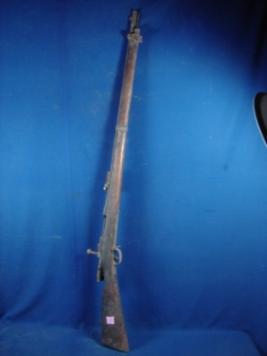 | Description / विवरण | Kartoosi single barrel Turkish gun with bolt and wooden butt. |