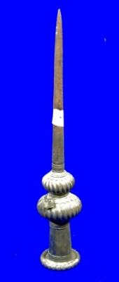 | Description / विवरण | Budi made of iron having hollow mouth to attach the spear and pointed end. Two iron rings are made on it. |