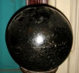 | Description / विवरण | Stone cannon ball made of stone and a perforated hole at the upper side. |