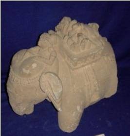 | Description / विवरण | Fragment of an independent sculpture of elephant, whose limbs and trunk is broken. A Mahabat is depicted on the elephant to control it. On the back of elephant, a tank is depicted and in tank, a male is seated flanked by 2 seated females. The elephant s body is adorned with jewels. |