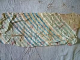 | Description / विवरण | This is a piece of cloth with lahariya designs. Its colour is green and white. Double lining in diagonal pattern on it. It is partially damaged. |