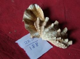 | Description / विवरण | It is Lamellibranchia shell having undulated upper surface. Umbo prominent. Hinge line straight surface covered by radial lines. |