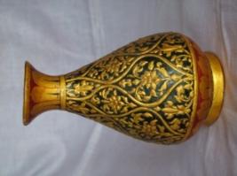 | Description / विवरण | It is a flowerpot with ring footed base, belly narrowing towards neck and out turned rim having raised floral and petal shaped decoration in golden colour over the black and red base colour. |