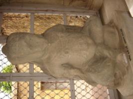 | Description / विवरण | Independent sculpture depicting Lord Ganesh seated in Lalitasana, hands are broken, so attributes cannot be identified. Face has been chopped off. He is pot bellied. |