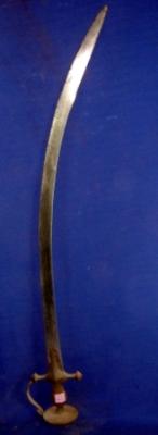| Description / विवरण | Una made of iron faulad with curved blade and a simple Alamgiri hilt with knuckle guard. |