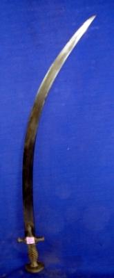 | Description / विवरण | Una sword with slightly curved blade. The hilt has incised line designs. |