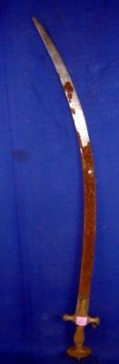 | Description / विवरण | Iron Una sword with curved blade and simple iron hilt. The blade is rusted. |