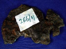 | Description / विवरण | Copper axe, irregular in shape, with blunt edges and rough surface. Patina formation is seen on its body. |