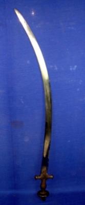 | Description / विवरण | Una Sword having curved faulad blade and iron Alamgiri hilt with check pattern. |