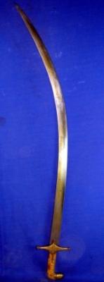| Description / विवरण | Una Sword , the blade is slightly curved with water marks on it. The hilt is fitted with ivory and koft work on it. |