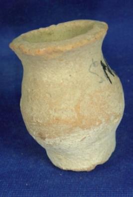 | Description / विवरण | Coarse, terracotta tiny jar with averted broad rim, narrow neck, bulbous body and flat, circular footed base. |