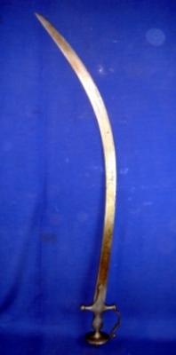 | Description / विवरण | Una Sword a faulad with curved blade and plain iron hilt with knuckle guard. |