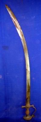 | Description / विवरण | Una Sword having curved blade and simple Alamgiri hilt with knuckle guard. |