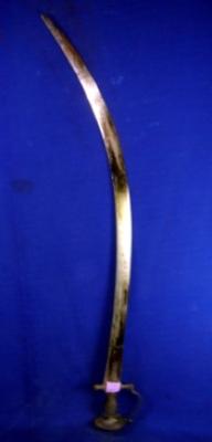| Description / विवरण | Iron Una Sword with curved blade and simple iron hilt with knuckle guard. |