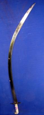 | Description / विवरण | Iron Irani Una Sword with their curved blade and a simple inlay hilt. |