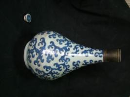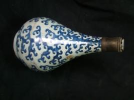 | Description / विवरण | Water bottle, blue with designs of scroll over white ground. |